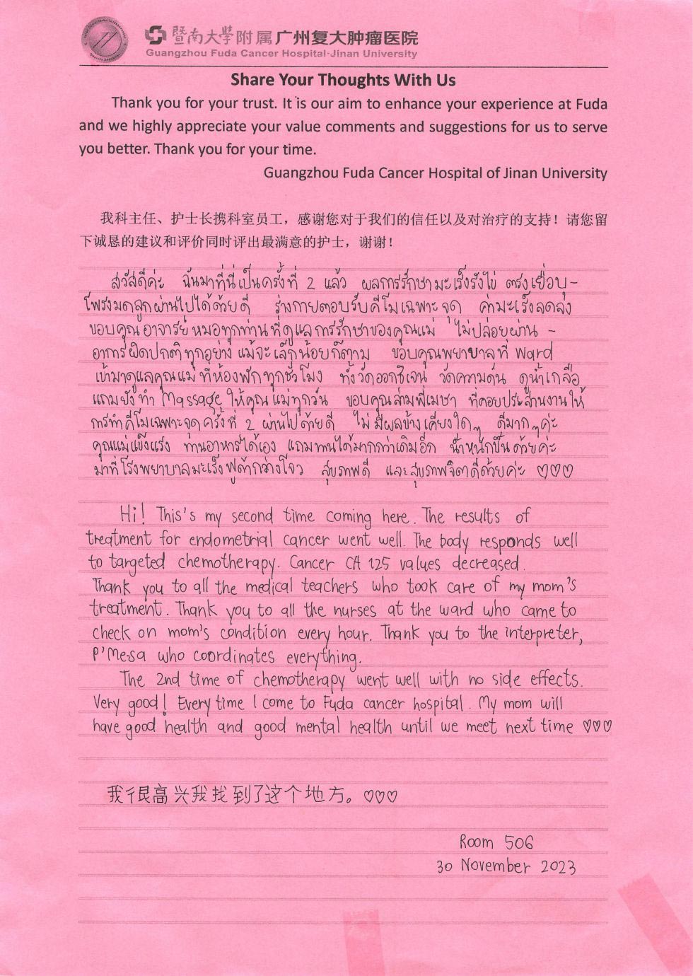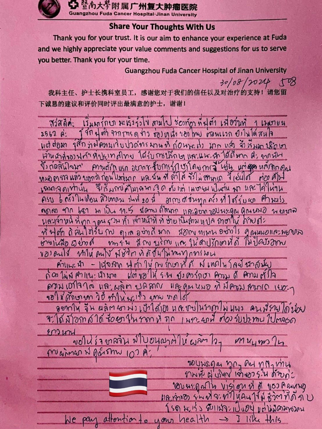ในช่วง 20 ปีนับตั้งแต่ก่อตั้งโรงพยาบาลโรคมะเร็ง Guangzhou Fuda มีผู้ป่วยชาวต่างชาติหลายหมื่นรายเดินทางมาที่นี่เพื่อแสวงหาการรักษาใหม่ๆ